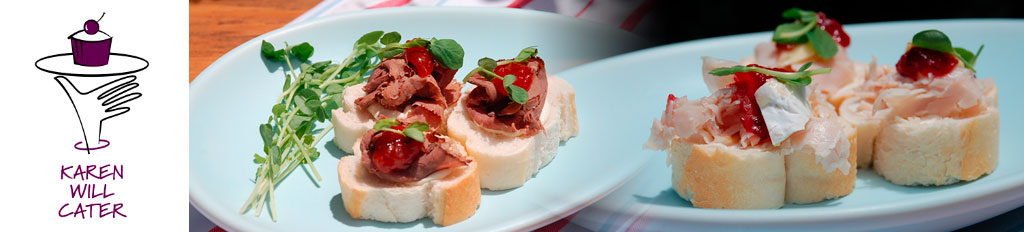 Our Christmas Canapes are the place to start. If you're looking for something different, we have the food to cater for it! Our catering team are happy to work with you on your Christmas Celebration with food that is guaranteed to please. We can offer you breakfasts, dinners, lunches, BBQ’s, buffets and of course our Christmas Canapes are sure to please. Karen Will Cater can drop off your selection of food prior to your celebration or we can come and set up, serve and clean up at the end. We have an experienced team of catering staff who are happy to take the work out of your celebration. Clients with special dietary concerns often miss out, but we take extra care to accommodate the needs of coeliac, gluten free, low fat and vegetarian clients. Browse through the taste tempting menus from breakfasts and brunches, morning and afternoon teas, lunches and dinners and of course our ever popular finger food range.
